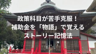 資格取得体験談 政策科目が苦手克服!補助金を「物語」で覚えるストーリー記憶法 中小企業診断士試験の政策科目対策に!補助金制度をストーリーで覚える記憶術と実務にも活かせる学び方を解説。 2025.08.06 2025.09.03 資格取得体験談