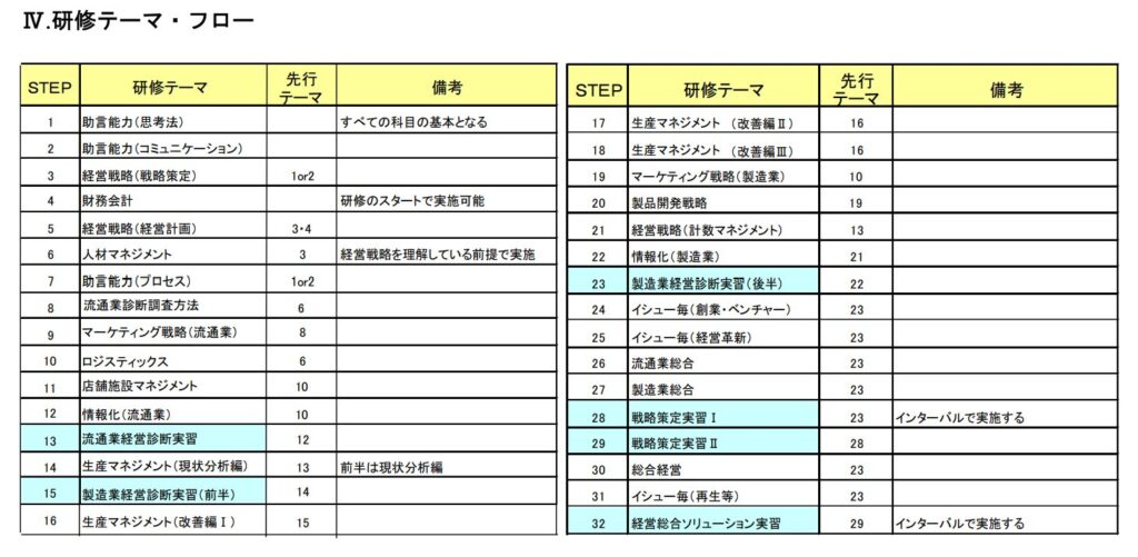 中小企業診断士養成課程・演習・実習基準(中小企業基盤整備機構 資料)より
